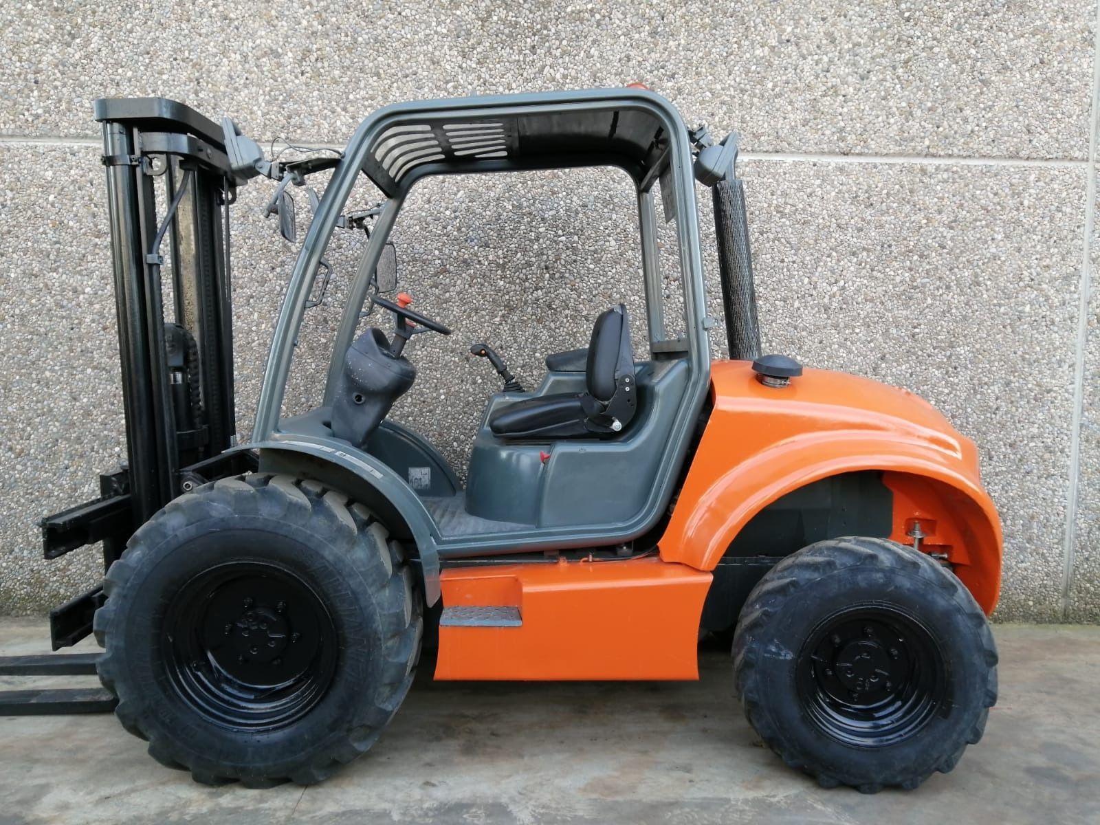 Carretilla todoterreno 4x4 Ausa C 250 H x4, capacidad de carga 2.500 kilos, altura de elevación mástil triplex con elevación libre a 3.700mm, pocas horas, máquina con documentación, está MATRÍCULADA.